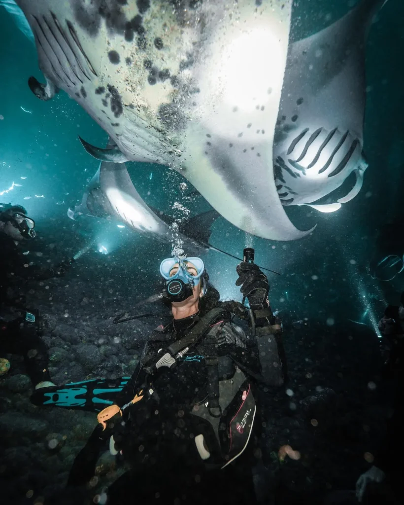 This is pure magic, no exaggeration. Off the Kona coast, giant manta rays gather at night to feed on plankton attracted by underwater lights.