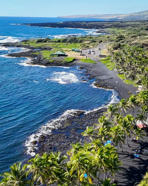 Imagine this: jet-black sand, swaying coconut palms, and often, giant Hawaiian Green Sea Turtles (honu) basking on the shore.