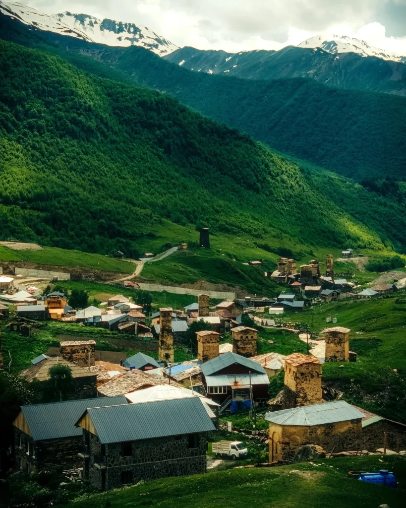 Georgia’s Caucasus Mountains are seriously underrated – think dramatic peaks, remote villages with unique Svanetian tower houses, and incredible hospitality.