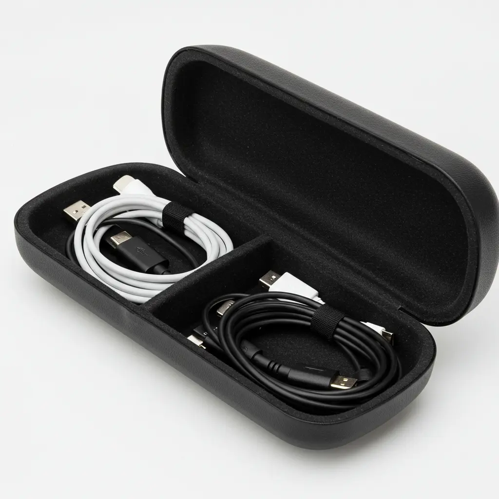 A hard-shell sunglasses case is perfect for keeping charging cables and earbuds tangle-free.