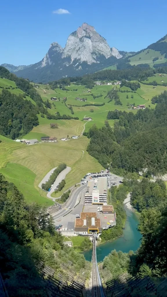 If you haven’t seen the Stoosbahn funicular on TikTok yet, WYD? This isn’t just a train; it’s a futuristic marvel that climbs a 110% gradient, with rotating barrel-like cabins that keep you level the whole way up.