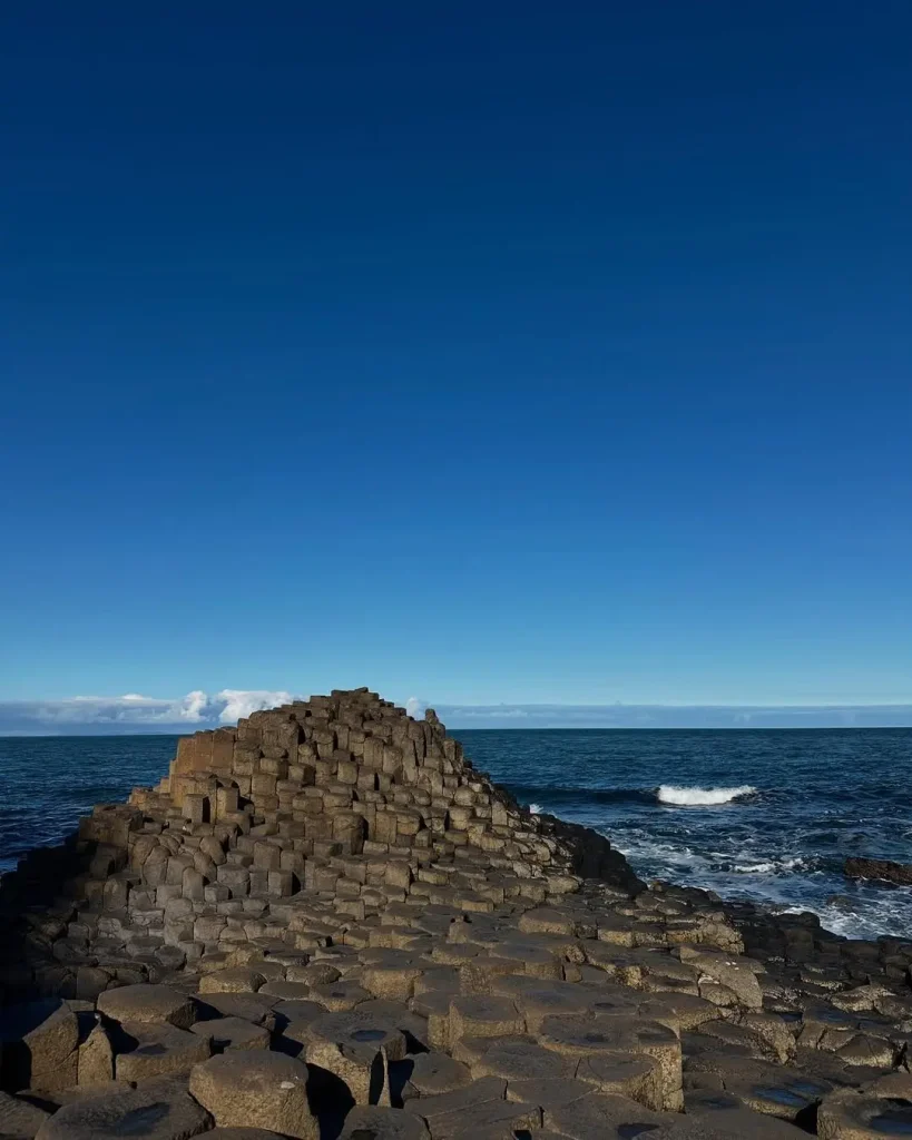 Around 40,000 interlocking basalt columns, a result of ancient volcanic activity, create an otherworldly landscape tumbling into the sea.