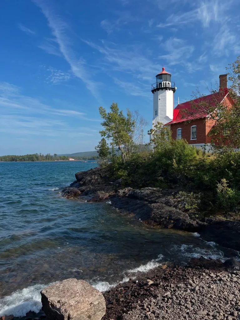 Picture a historic lighthouse standing guard over the deep blue waters of Lake Michigan or Lake Superior, surrounded by forests of gold, red, and orange.