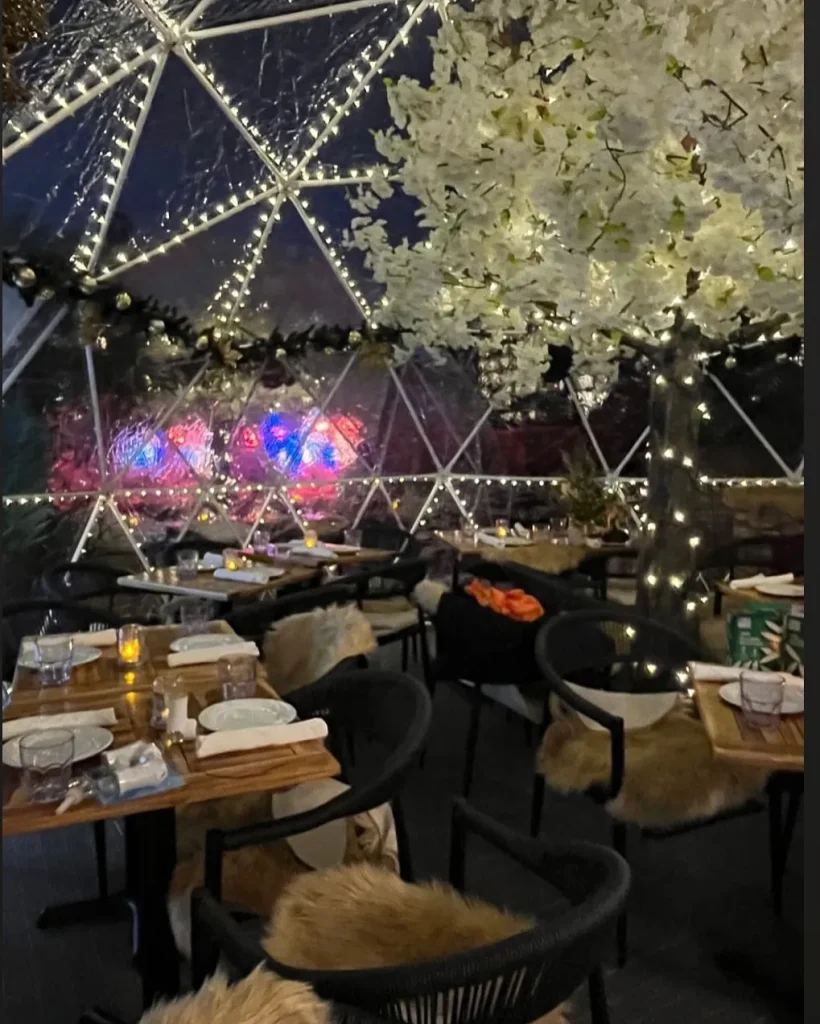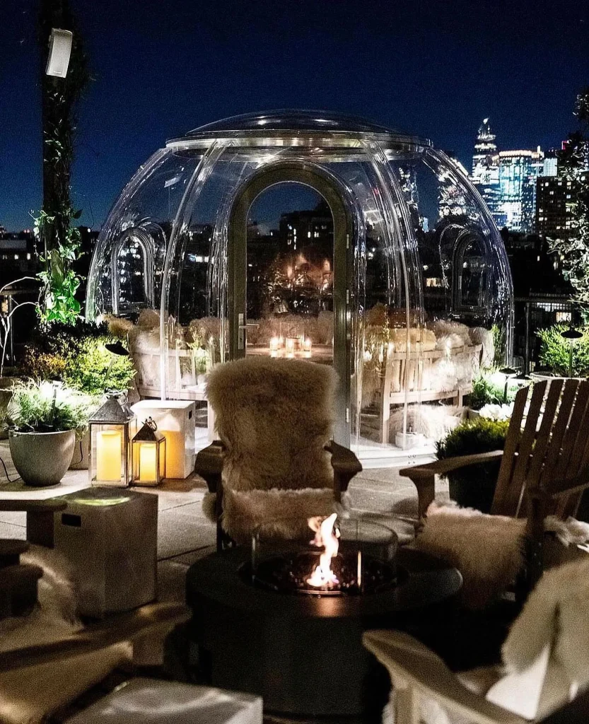 For a modern, trendy holiday experience, book a spot at a rooftop bar with heated igloos or cabins.