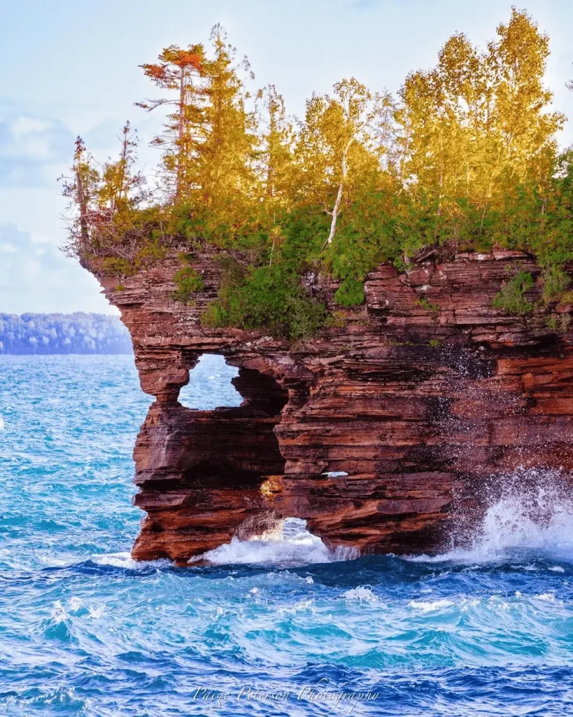 Another Lake Superior gem, this time on Michigan’s Upper Peninsula. Pictured Rocks is famous for its colorful sandstone cliffs, carved into stunning arches, caves, and formations by the lake’s power.