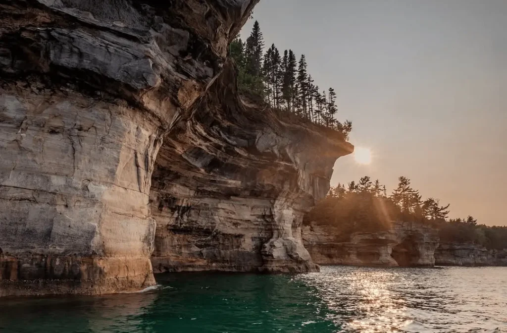 Hike along the North Country Trail for clifftop views, kayak beneath towering formations like Miners Castle or Grand Portal Point, or take a boat cruise for a panoramic perspective. Waterfalls and beaches add to the appeal.