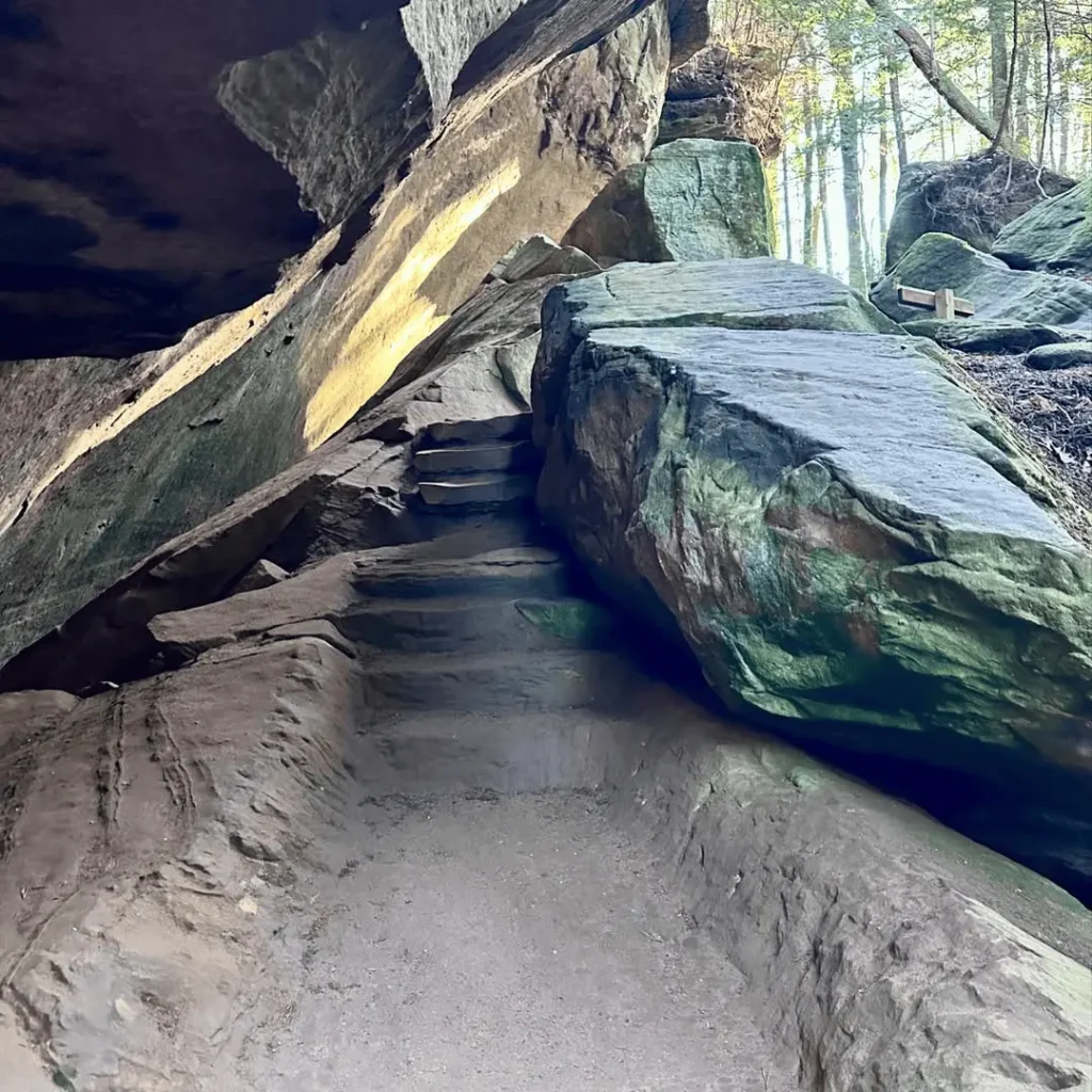 Hike trails leading to iconic spots like Old Man’s Cave, Ash Cave (Ohio’s largest recess cave), Cedar Falls, and Cantwell Cliffs. The scenery is lush, green, and unexpectedly rugged.