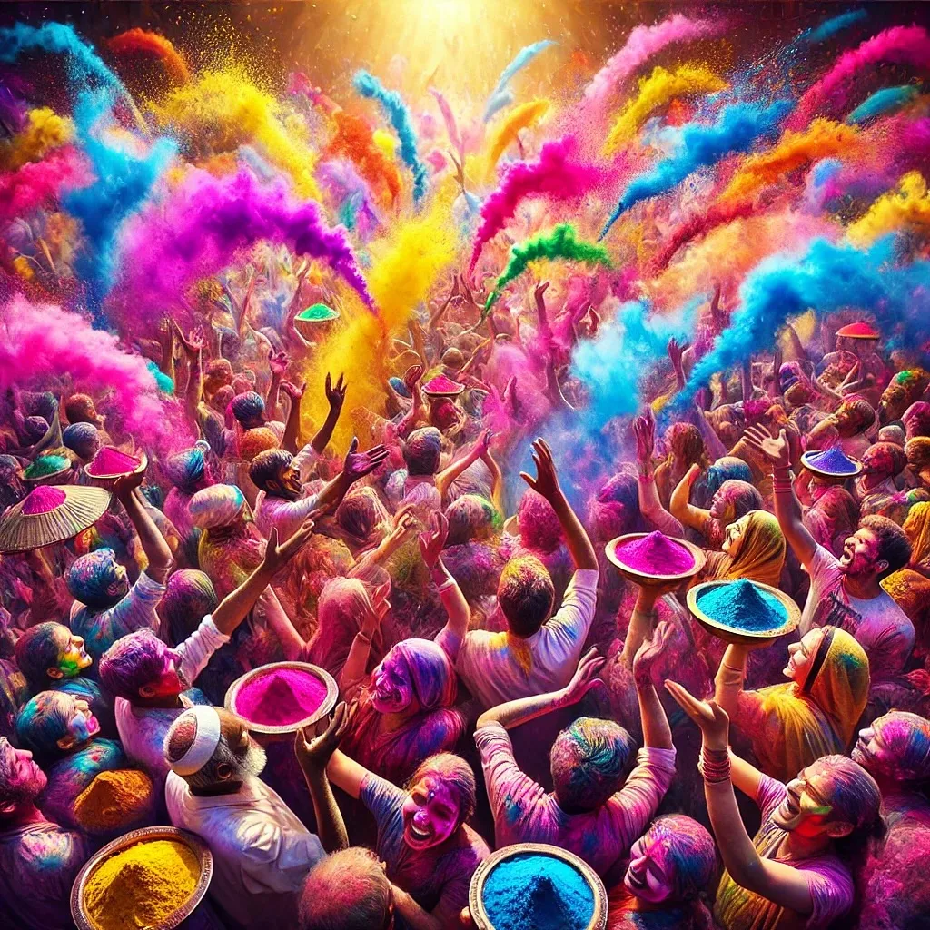 Participants throw powdered dyes (gulal) and colored water at each other, transforming streets into a riot of vibrant hues.