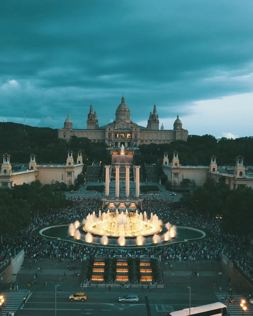 The real payoff comes at night. Stick around for the Magic Fountain of Montjuïc, a spectacular show of water, light, and music.