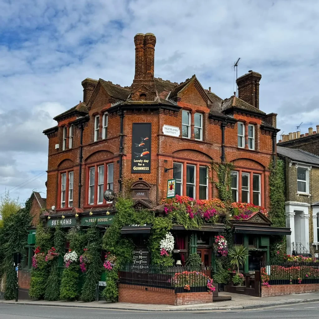 Find a historic pub, like Ye Olde Cheshire Cheese (a 17th-century spot) or The Churchill Arms (covered in flowers).