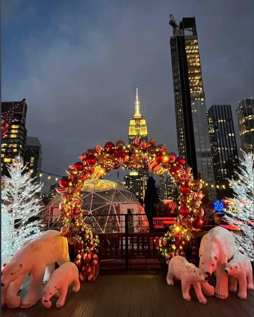 Many NYC rooftops transform into cozy winter spots with heated igloos and festive cocktails.
