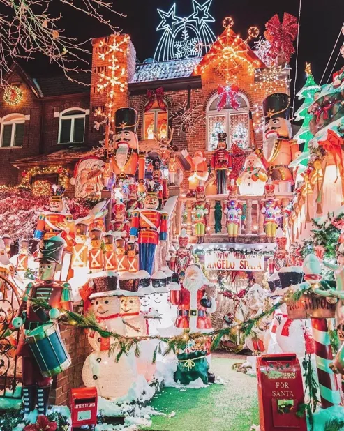 Houses are decked out with life-sized figures and enough lights to be seen from space.
