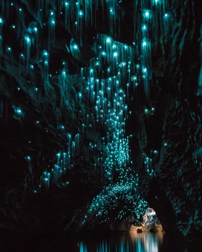 Thousands of tiny bioluminescent creatures create a galaxy on the cave ceiling. It’s quiet, peaceful, and visually trippy.