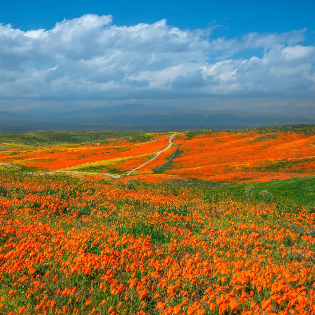 If you haven’t seen the California Poppy Reserve in full bloom, WYD? This high desert landscape transforms into a literal ocean of bright orange.