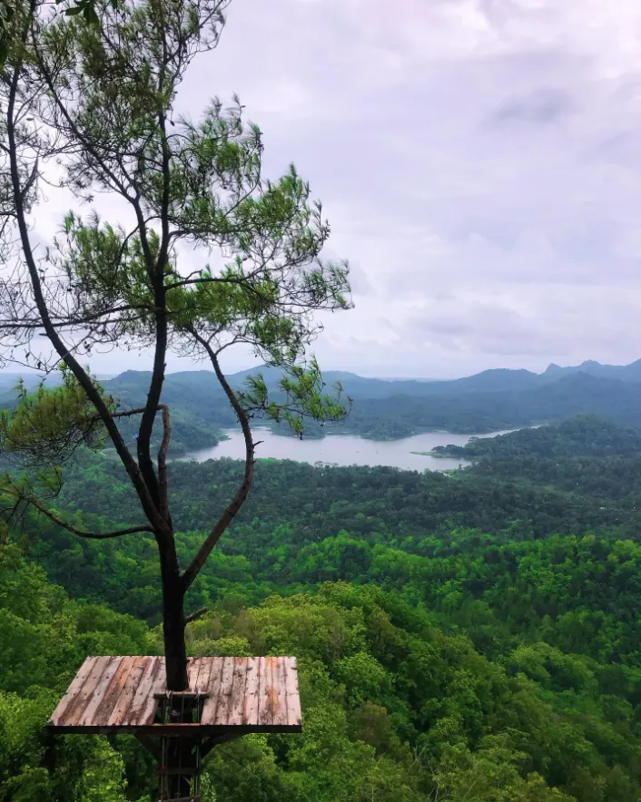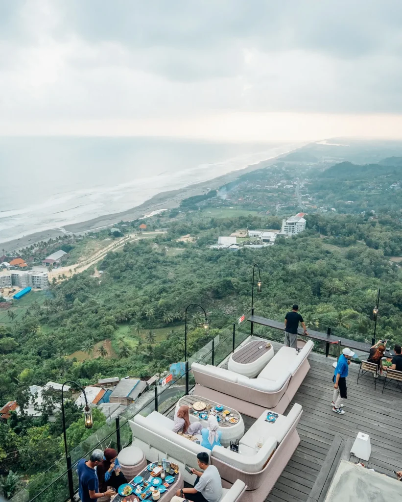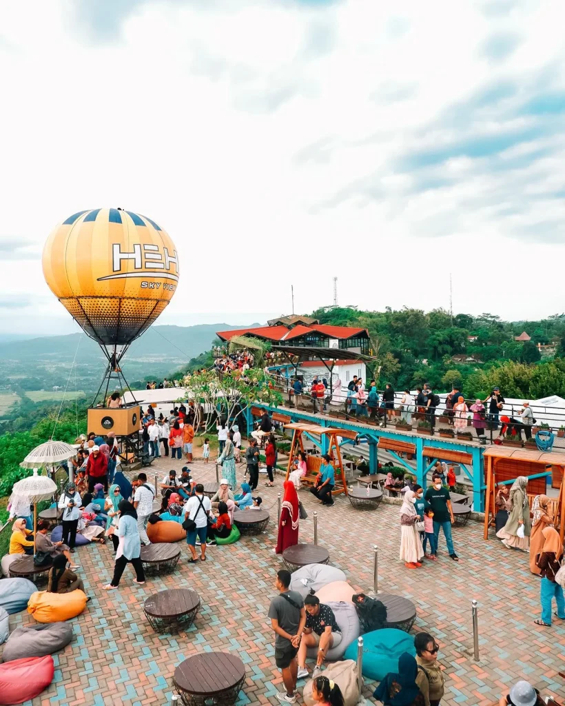Located in the hills of Gunung Kidul, this place offers a modern vibe with bean bags, sky balloons, and glass terraces.