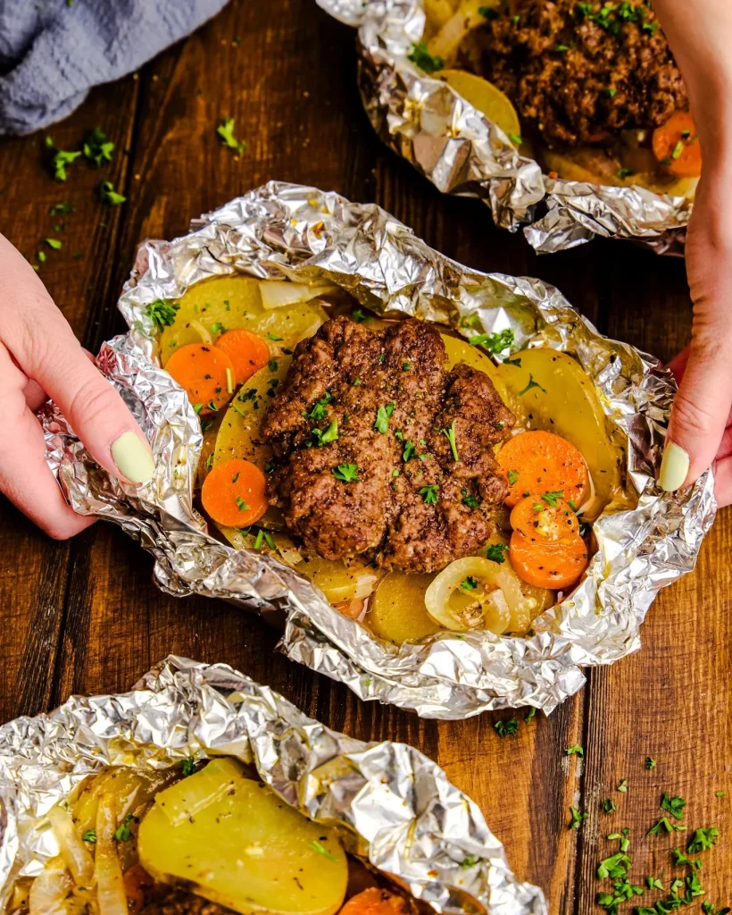 The beauty of Hobo Dinners is the complete meal in one packet and the surprise reveal when you open it.