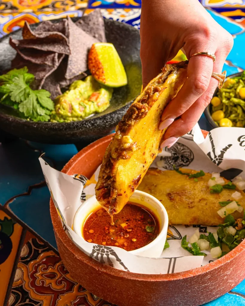 The combination of carbs from the tortilla, protein from the chicken and beans, and fat from the cheese gives you a balanced kick of energy.