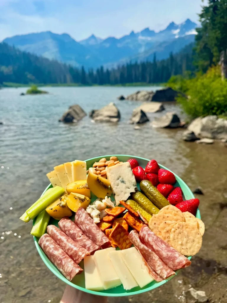For days when you just want to graze without stopping for a long break, a “trail charcuterie” is perfect.