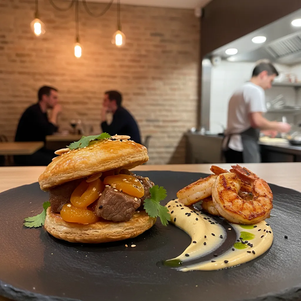 Imagine dishes like veal tagine vol-au-vent or lightly seared langoustines with amba mayo.