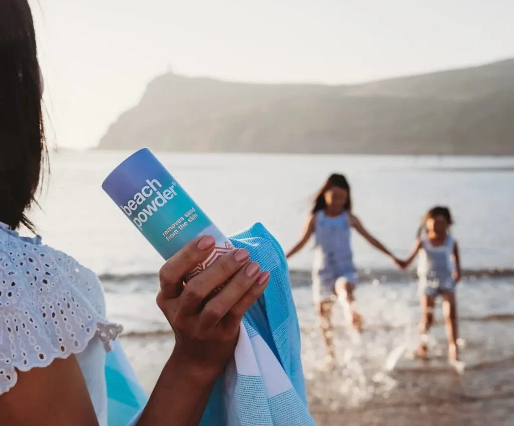 A little sprinkle of baby powder on sandy skin makes the sand fall right off, like magic! No more gritty car seats or scratchy legs.