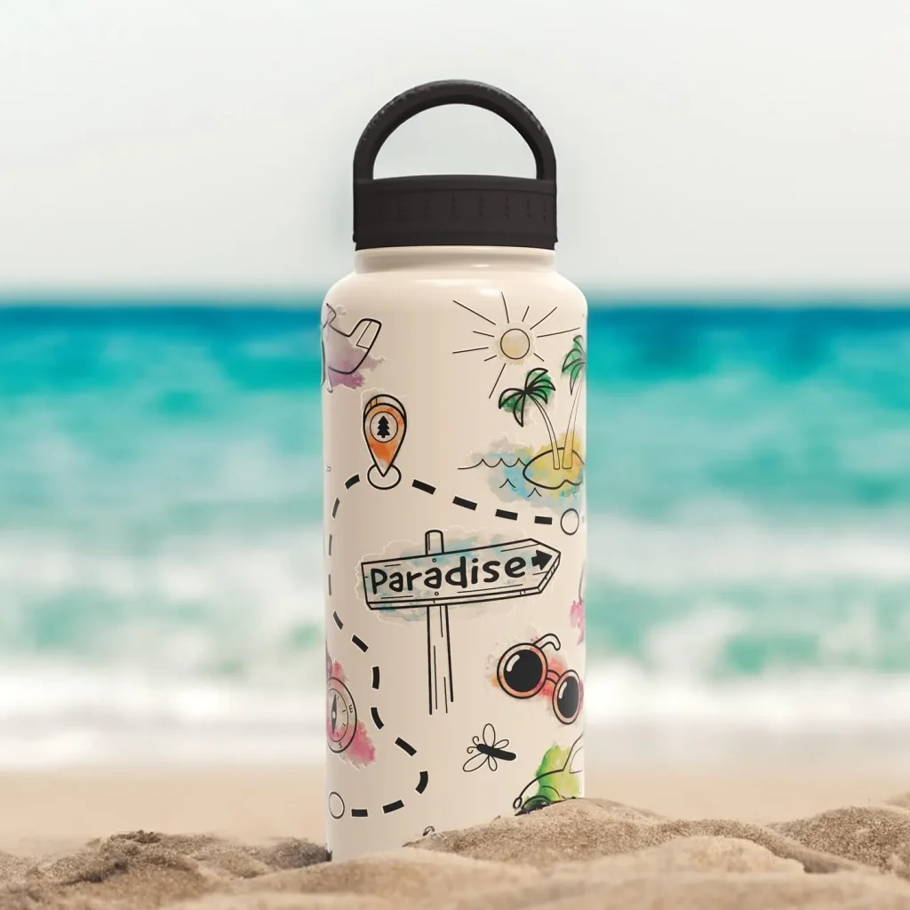 It keeps your water icy cold for hours, saves you money on overpriced beachside drinks, and is way kinder to the planet.