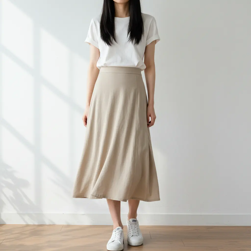 12. Midi Skirt with a Basic Tee and Sneakers