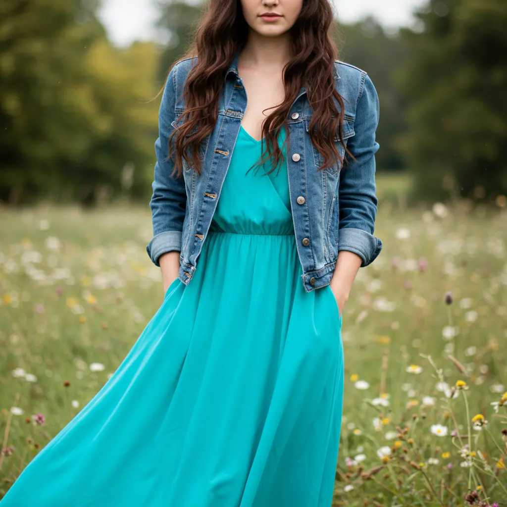 3. Flowy Maxi Dress and Denim Jacket