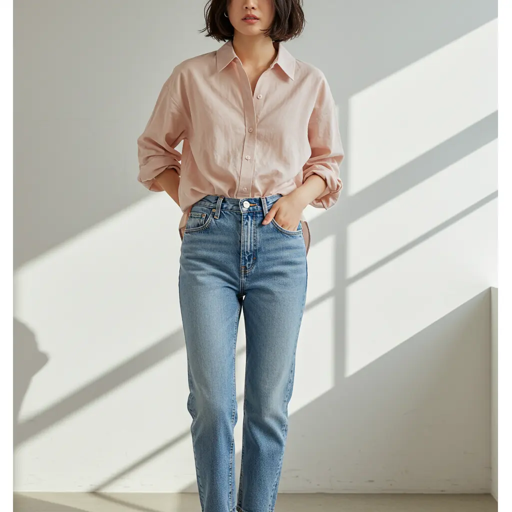 6. High-Waisted Jeans and a Relaxed Button-Up Shirt