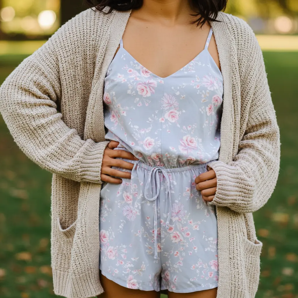 7. Romper with a Cozy Cardigan