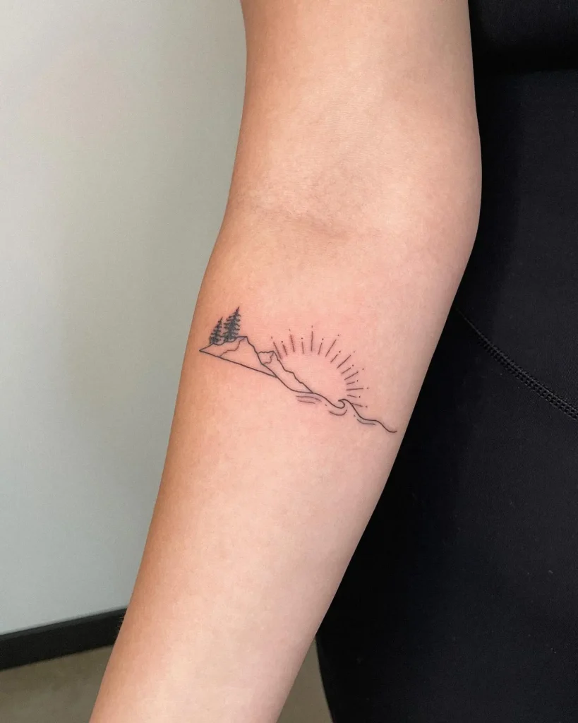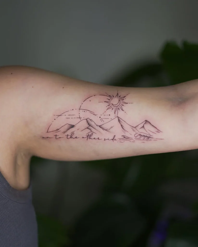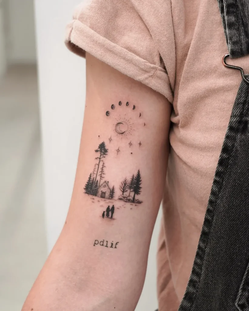 Capture a moment in time. A tattoo showing the phases of the moon or the path of the sun arching over a minimalist silhouette of a significant landmark (a specific mountain peak, a unique bridge, a temple).