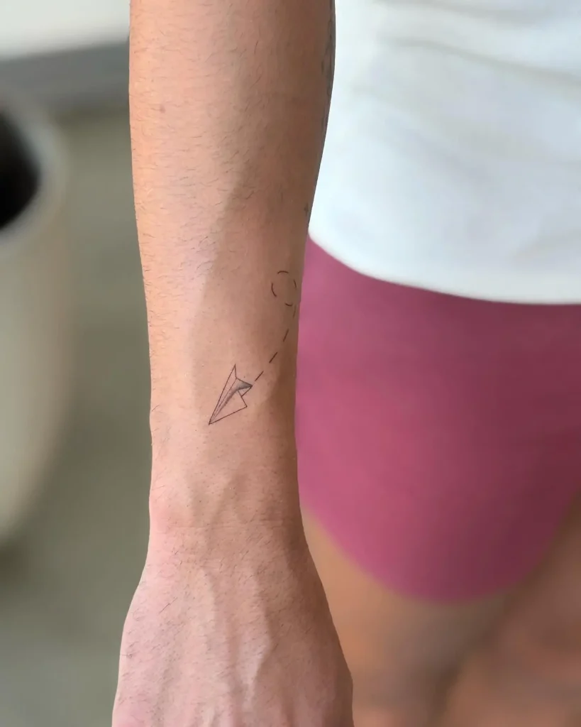 - Style Fusion: Love geometric shapes and fineline? Maybe your Plane Tattoo could have geometric wings but a fineline trail. Don’t be afraid to discuss merging styles with your artist if their skillset allows.