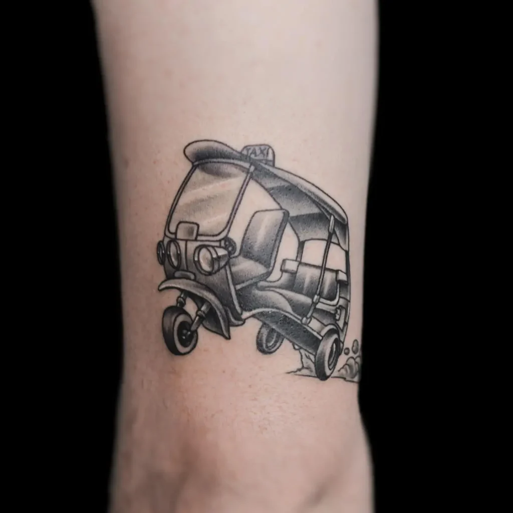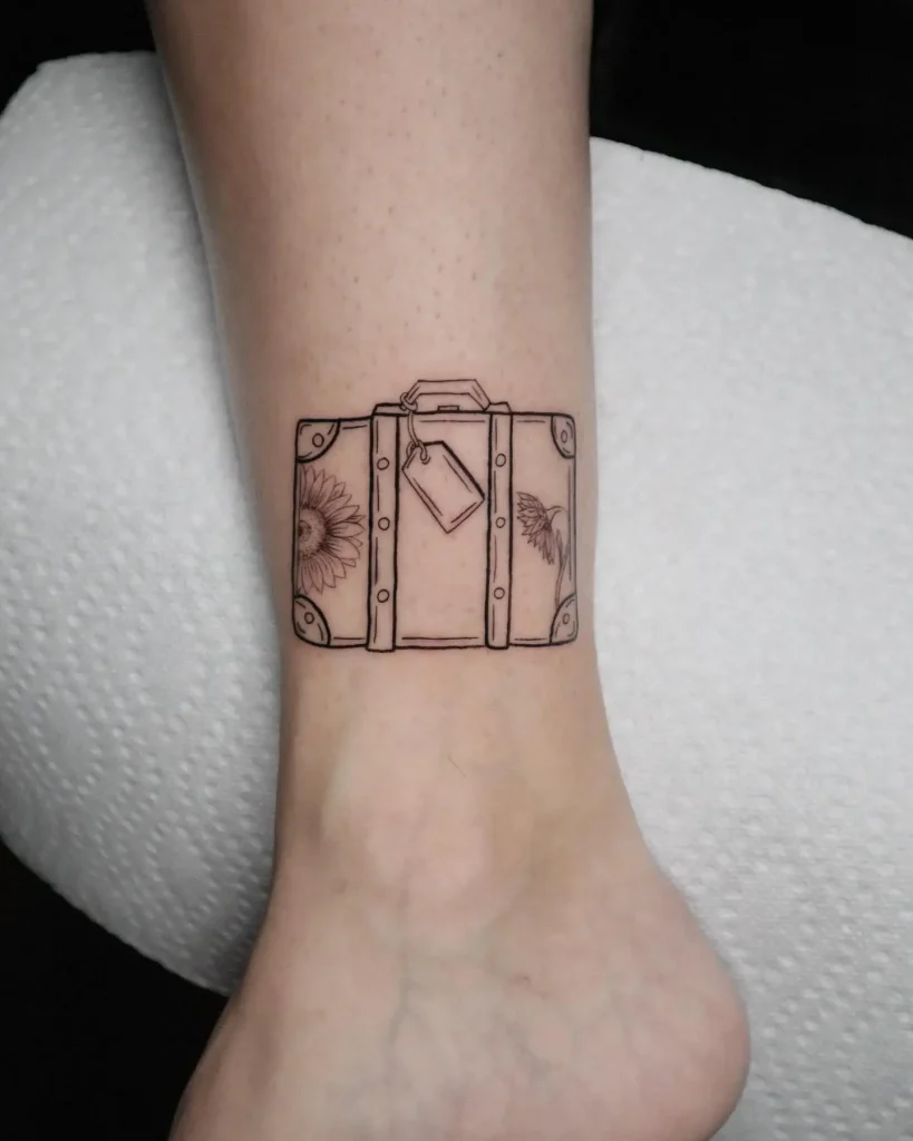 - Colour Pop (or Not): Decide if you want black and grey or pops of colour. Colour can emphasize specific elements but may fade differently over time. Black and grey often ages very elegantly, especially for Simple Travel Tattoo designs.
