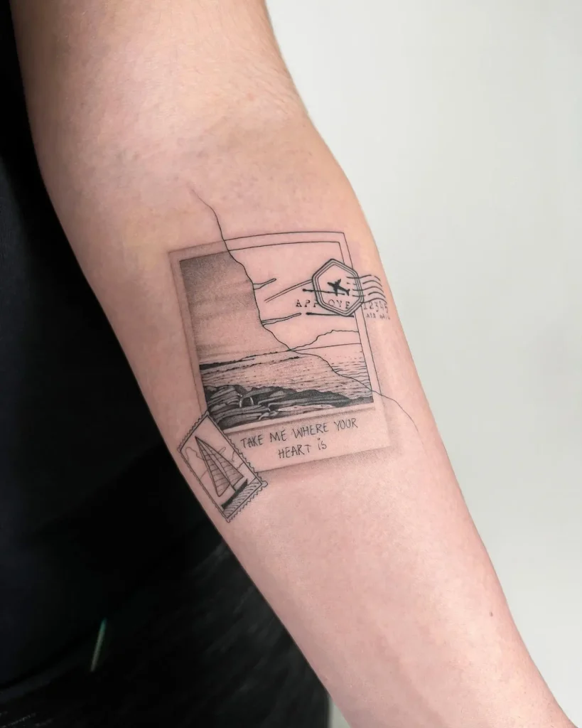 Okay, passport stamps are a classic Travel Related Tattoos theme, but let’s elevate it.