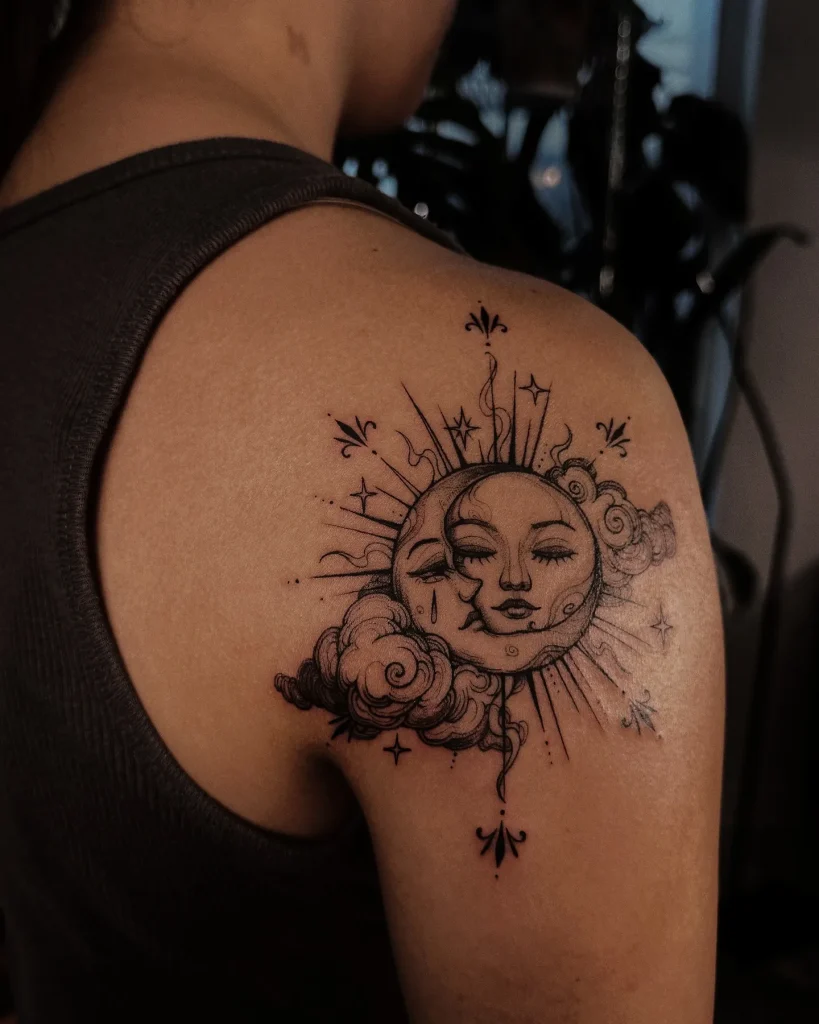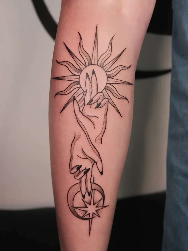 For those who honor balance, a tattoo that incorporates both the sun (masculine, active energy) and the moon (feminine, intuitive energy) is perfect.