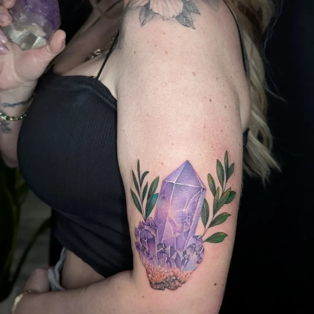 A tattoo of a crystal cluster like amethyst for intuition or quartz for clarity is like carrying that energy with you 24/7.