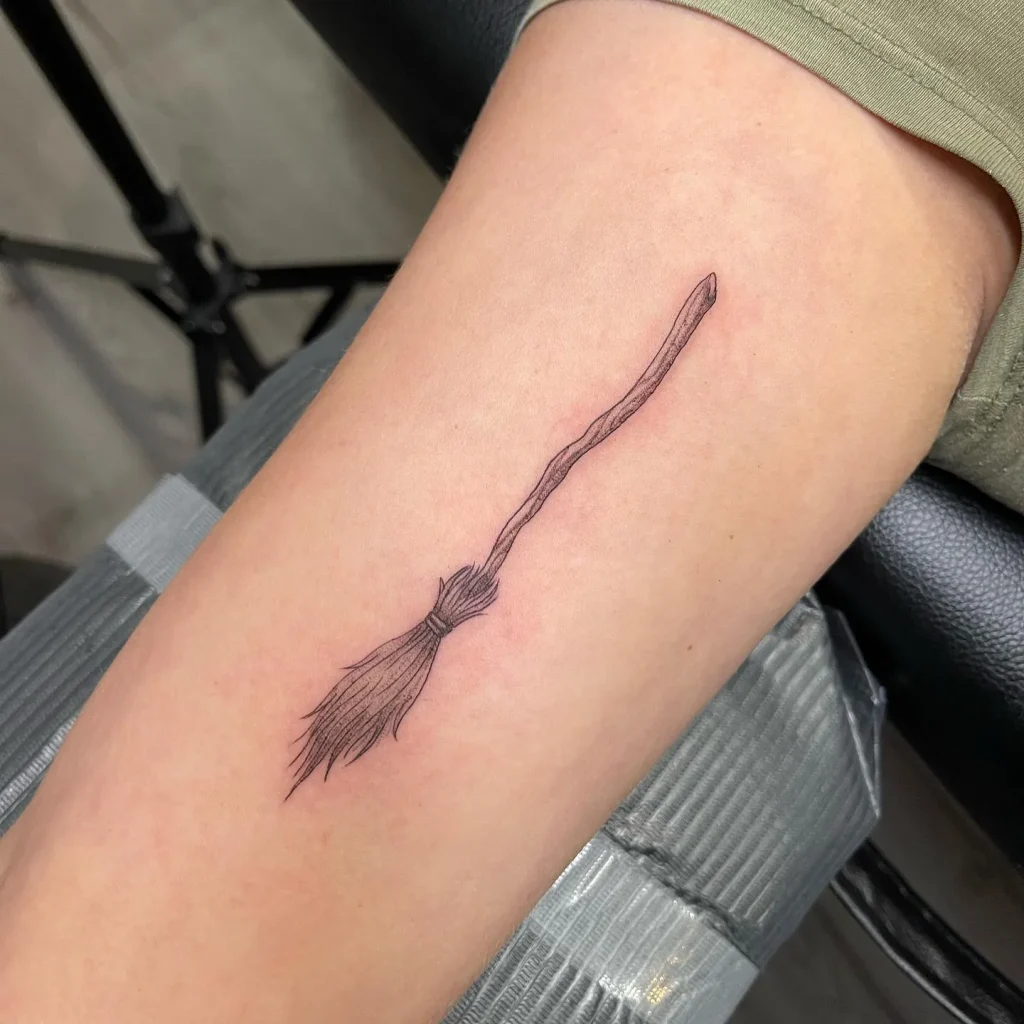 A sleek, modern take on a witch’s broom, maybe adorned with flowers or herbs, is a subtle nod to sweeping away negative energy and taking flight on your own terms.