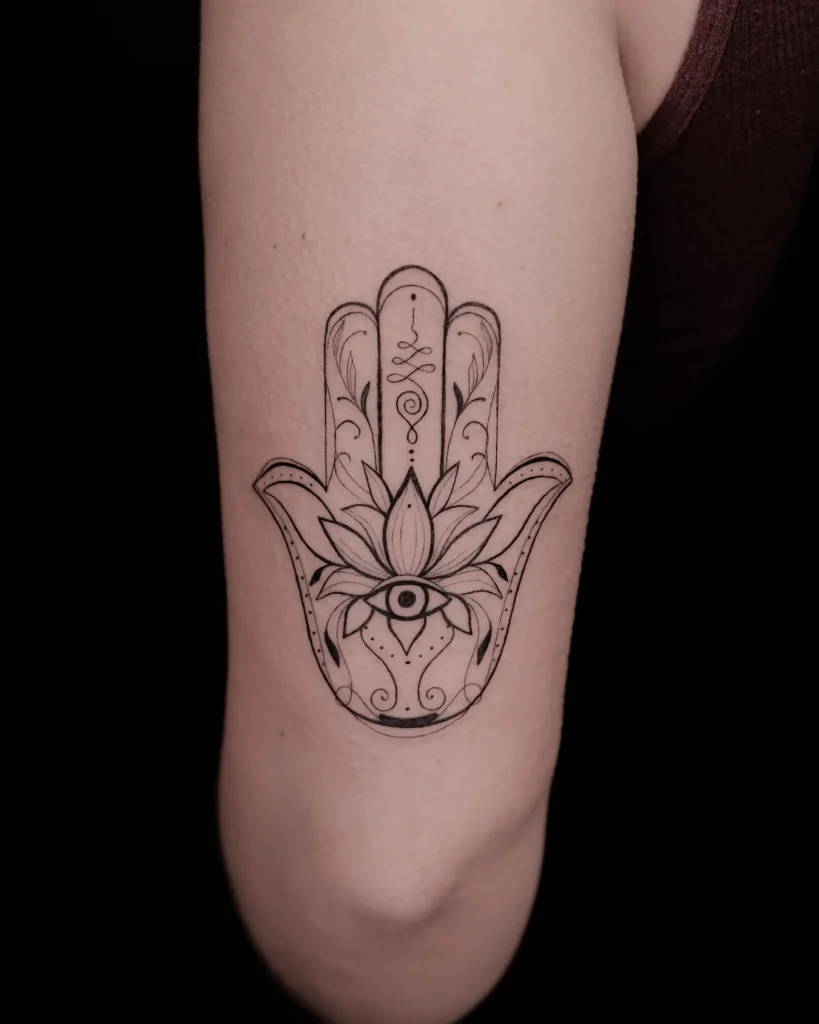 Often designed with intricate patterns and sometimes an eye in the center, it makes for a stunning piece on the back of the neck or the center of the back.