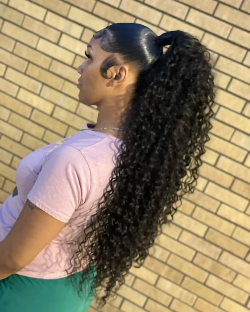 The curly ponytail is a fun and bouncy style that works for any occasion. Whether you’re hitting a beach or a brunch spot, this look will keep you feeling lively and carefree.