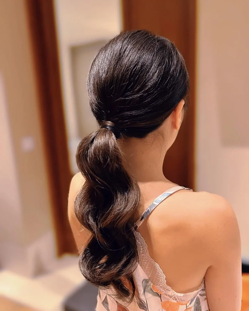 The twisted low ponytail adds a bit of flair to the classic ponytail by twisting the hair before securing it. It’s a quick and stylish option that looks more sophisticated than a regular ponytail.
