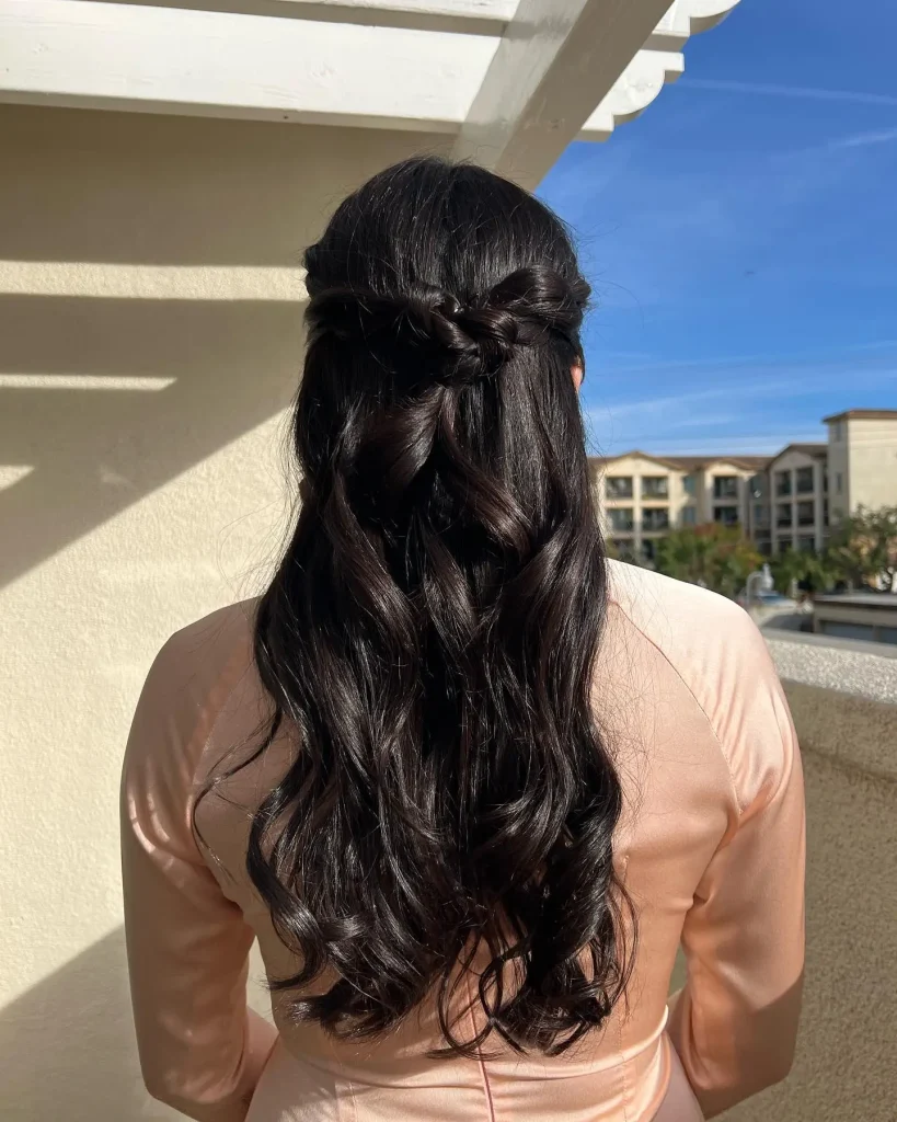 The half-up, half-down hairstyle strikes the perfect balance between pulling your hair back and letting it flow. This style is great for any occasion, whether it’s a sightseeing tour or a casual dinner.
