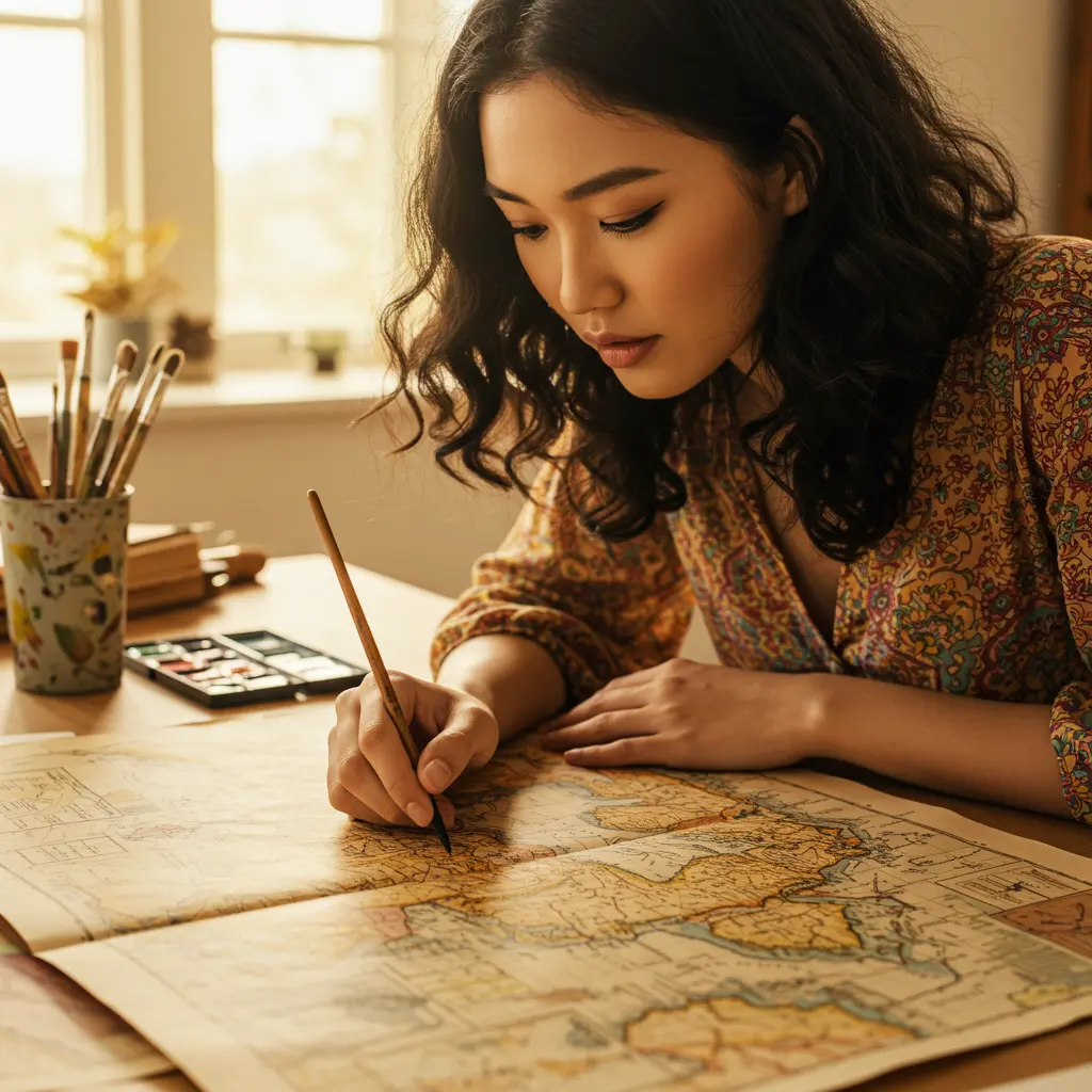 Mark your travel routes on maps, cut out sections to use as backgrounds, or highlight key locations to add an informative yet artsy touch.