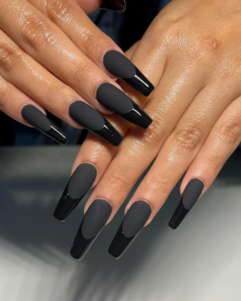 A matte top coat will completely transform even the simplest Black Nail Designs.