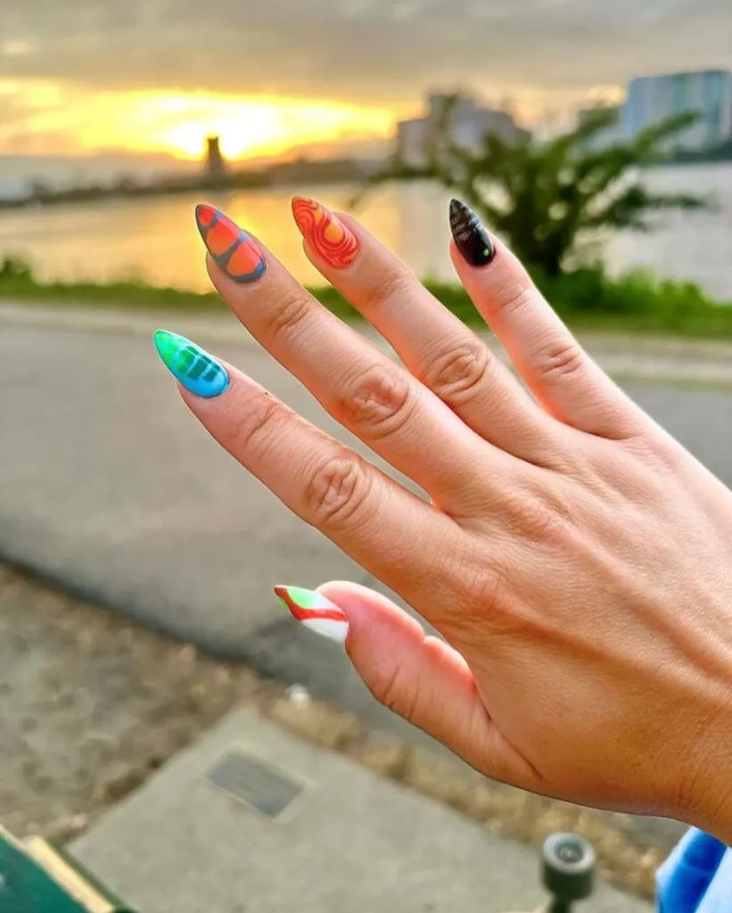 Each nail can be different, creating a unique and modern art look.