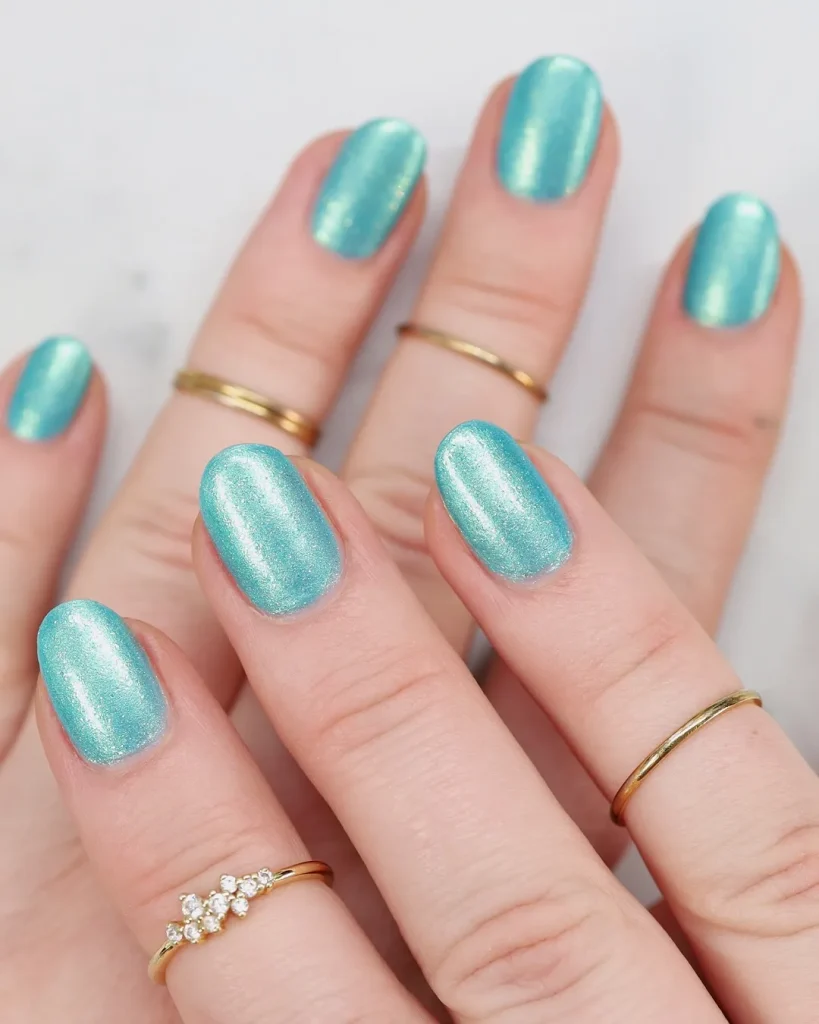 That’s the vibe of an aqua shimmer polish.