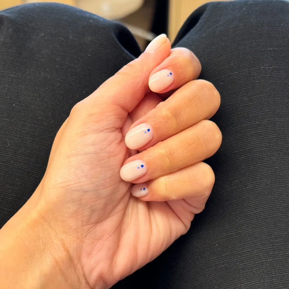 A clean, simple Nude Nails base is elevated with a tiny, precise dot of neon color right at the cuticle or in the corner of the nail.