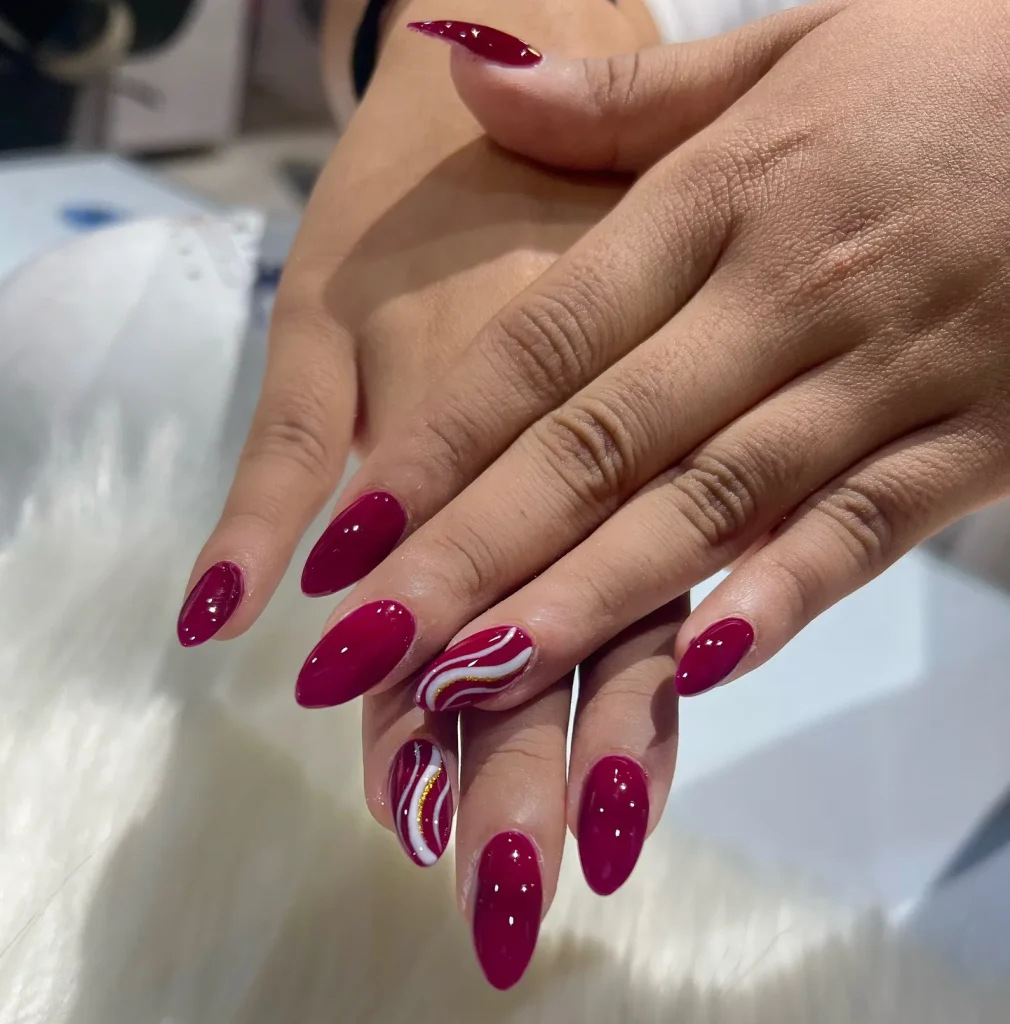 A deep, wine-colored manicure is perfect Fall Nail Inspo, looking incredible while you explore vineyards.