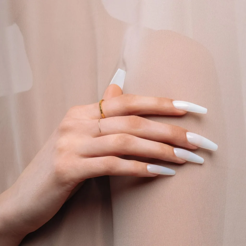 Crisp, opaque white nails are a power move.