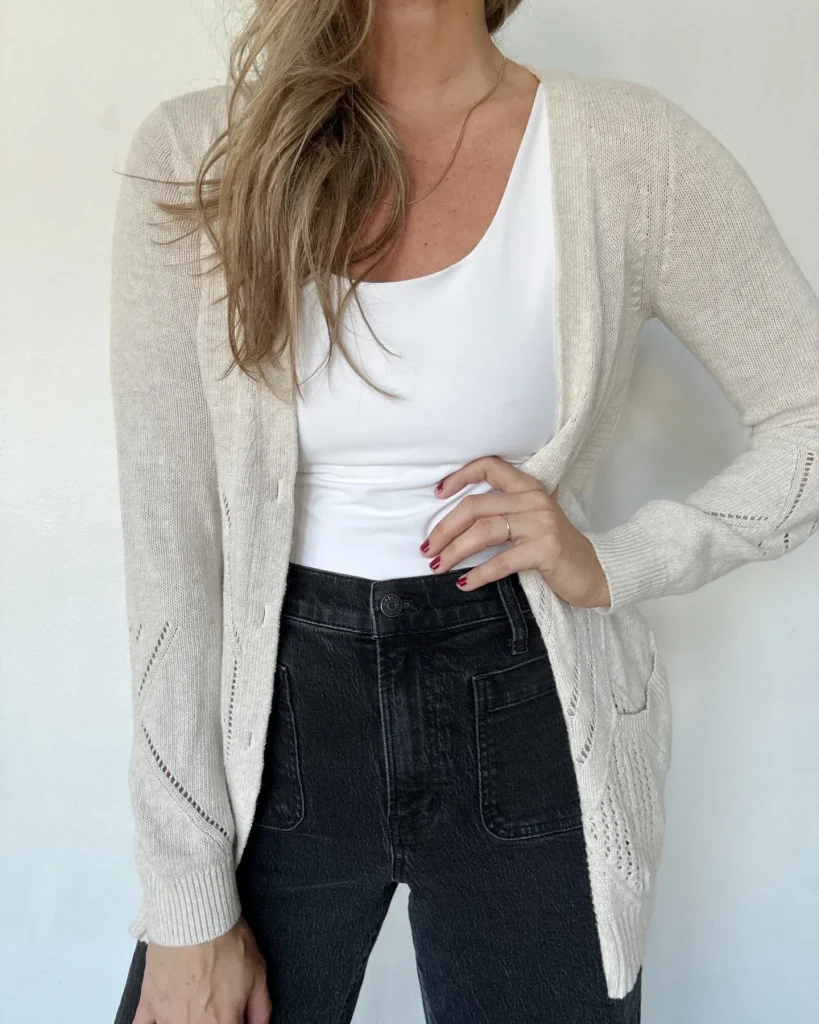 Layer a long, neutral-toned cardigan over a basic white or black tee.