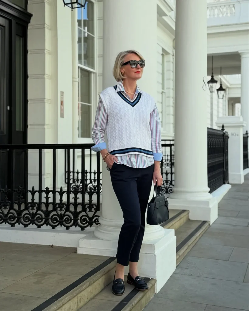 The sweater vest trend is still going strong, and it’s perfectly suited for Parisian layering.