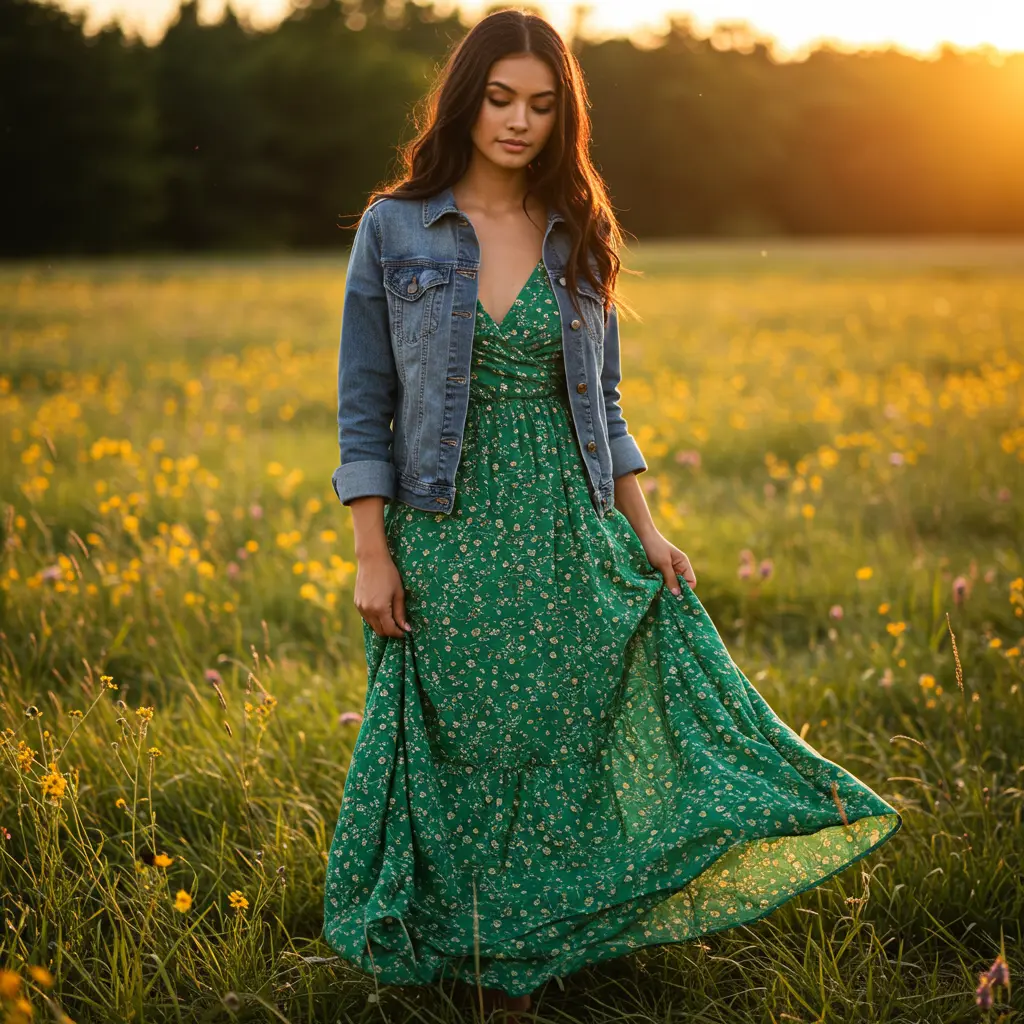 7. Flowy Maxi Dress & Denim Jacket